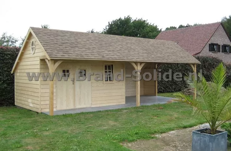 Luxe kapschuur 8 x 4 in complete wanden en eiken staanders