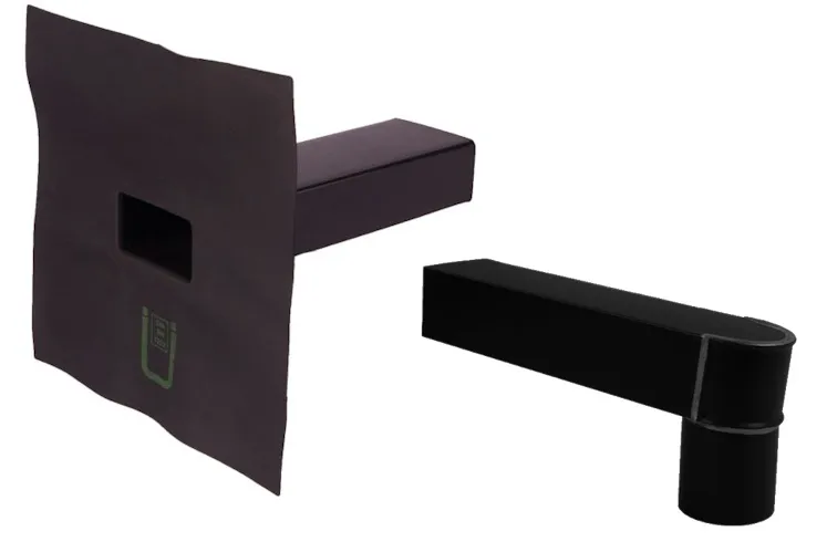 Zij-uitloop voor schuine en rechte opstanden. Inclusief verlengstuk Zwart gepoedercoat
