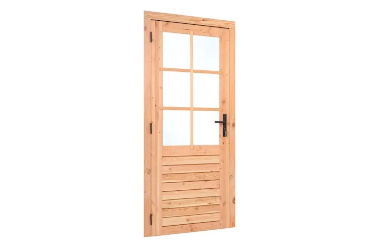 Deze douglas deur is blank/onbehandeld incl. kozijn, Ideaal voor in uw blokhut, tuinhuis, kapschuur, prieel of overkapping.