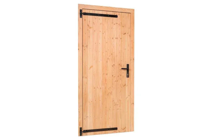 Deze deuren hebben een sponning aan de zijkant voor blokhutprofiel van 28mm. Mocht u hier tegenaan werken met bijvoorbeeld Zweeds rabat, adviseren wij deze op te vullen met een lat of regel om deze zo massief te maken. Deze deuren worden niet-afgehangen geleverd, dit dient in het werk gedaan te worden. Wij adviseren deze deuren te behandelen met Aidol HK Douglas of met een dekkende beits. Douglas is een houtsoort die behoorlijk kan krimpen en uitzetten. De deuren dienen dan mogelijk naderhand pas geschaafd te worden
