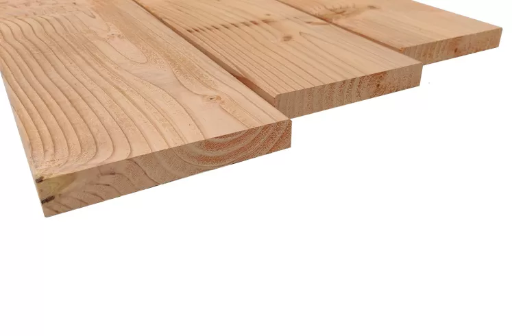 Brede Douglas Vlonderplank met Glad geschaafd profiel. Verkrijgbaar in de lengtes 300, 400 en 500 cm.