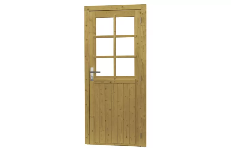 Geïmpregneerde vuren enkele glasdeur | 90 x 201 cm | 6-vaks roeden