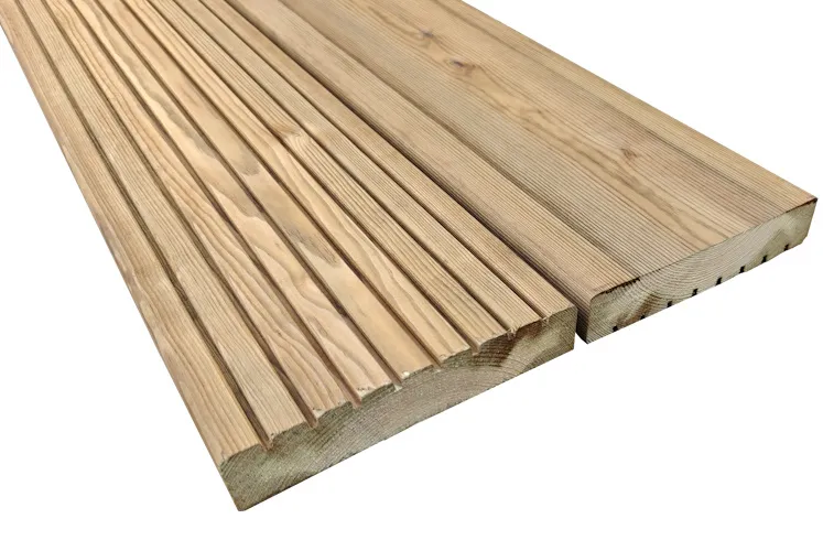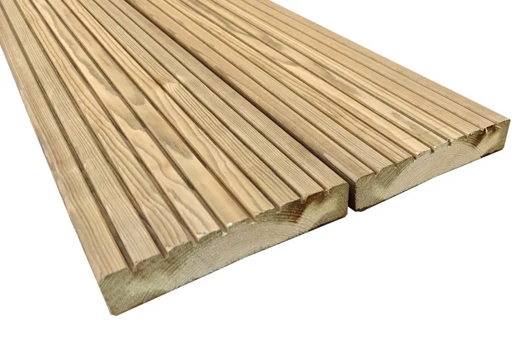 Met deze Bruin Geïmpregneerde Grenen vlonderplanken maakt u een schitterende vlonder of terras. Deze vlonderplanken hebben een ribbelprofiel met 8 groeven aan één zijde en aan de andere zijde een glad profiel.