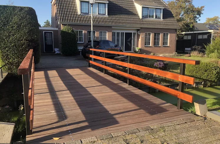 Hardhouten Brugdekdelen 45 x 140 Enkel Profiel. Houtsoort: Angelim Vermelho/Azobe (duurzaamheidsklasse 1)