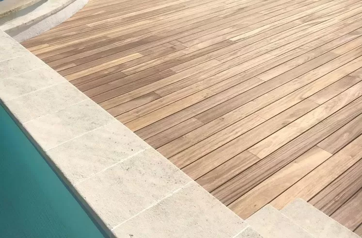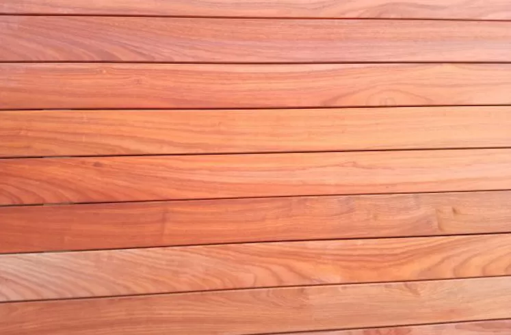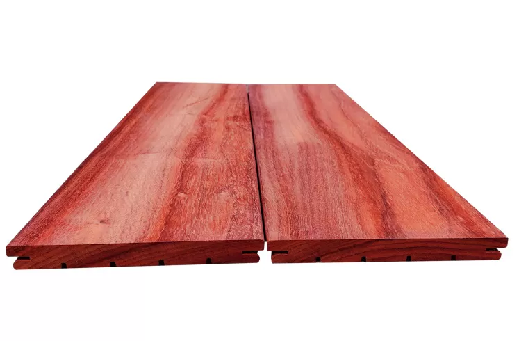 Padouk is een zeer stabiele en harde houtsoort met een bijzondere (vuurrode) kleur, mooie vlamtekening en eenvoudig te verwerken door de hiervoor genoemde stabiliteit. Door dit eigenschap is het ook één van de meest geschikte houtsoorten voor een vlonder met clips zoals B-Fix.