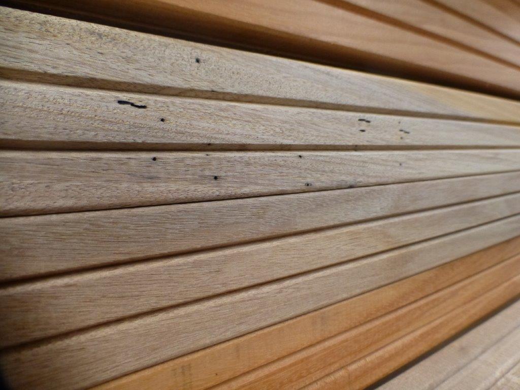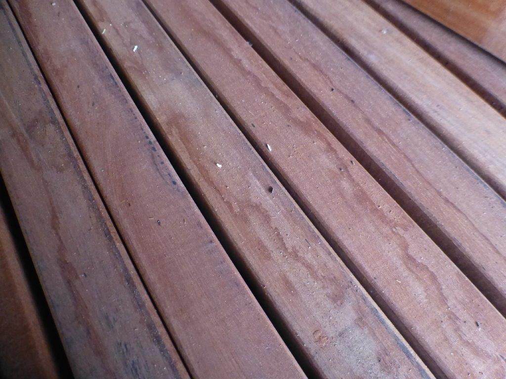 Wordt vooral gebruikt voor vlonders en terrassen. Bangkirai is een hardhoutsoort die niet bestaat: het is een verzamelnaam voor maar liefst 8 verschillende soorten. Mede daardoor kunnen er in bangkirai grote kleurverschillen zitten. Duurzaamheidsklasse meestal 2. Ook deze hardhoutsoort kan bloeden (zie tekst boven) Zolang het hout niet verwerkt wordt niet opslaan in fel zonlicht om trekken zoveel mogelijk te voorkomen. Wanneer u een vlonder gaat maken en daarvoor verschillende lengtes besteld dan is het vrijwel onmogelijk dat dit bestek uit 1 partij komt: hierdoor kunt u meer kleurverschil en maatverschillen in de hand werken. Bestel dus liever 1 lengte en verwerk deze vallend.