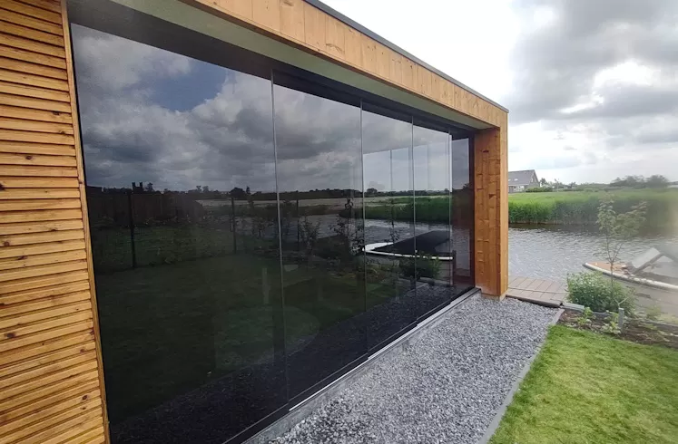Getinte Glazen schuifwand voor overkappingen en veranda's | Stel zelf samen | Kleur: Zwart 9005