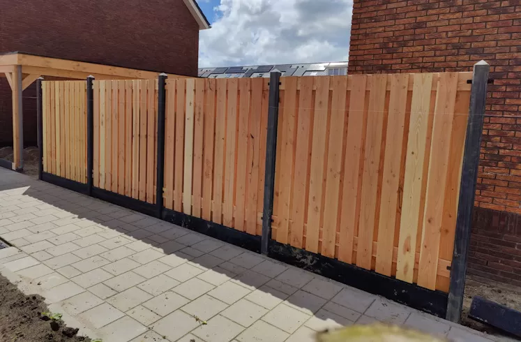 Voor bevestiging schermen met betonpalen 10 x 10 cm.