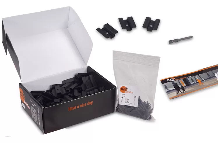 Zwarte B-Fix Clips (Normale en Begin/ Eindclips) voor hardhouten planken
