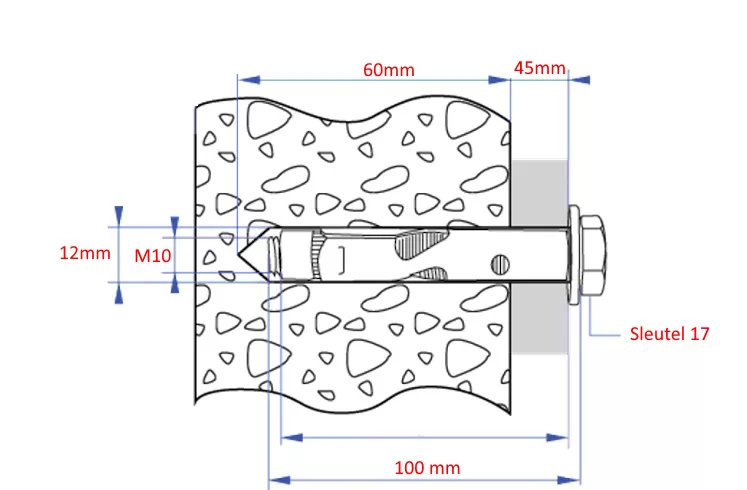 Dit doorsteekanker / Hulsanker / Keilbout met schroef en zeskantige kop is ideaal voor het bevestigen van houten balken tegen betonnen of stenen gevels.